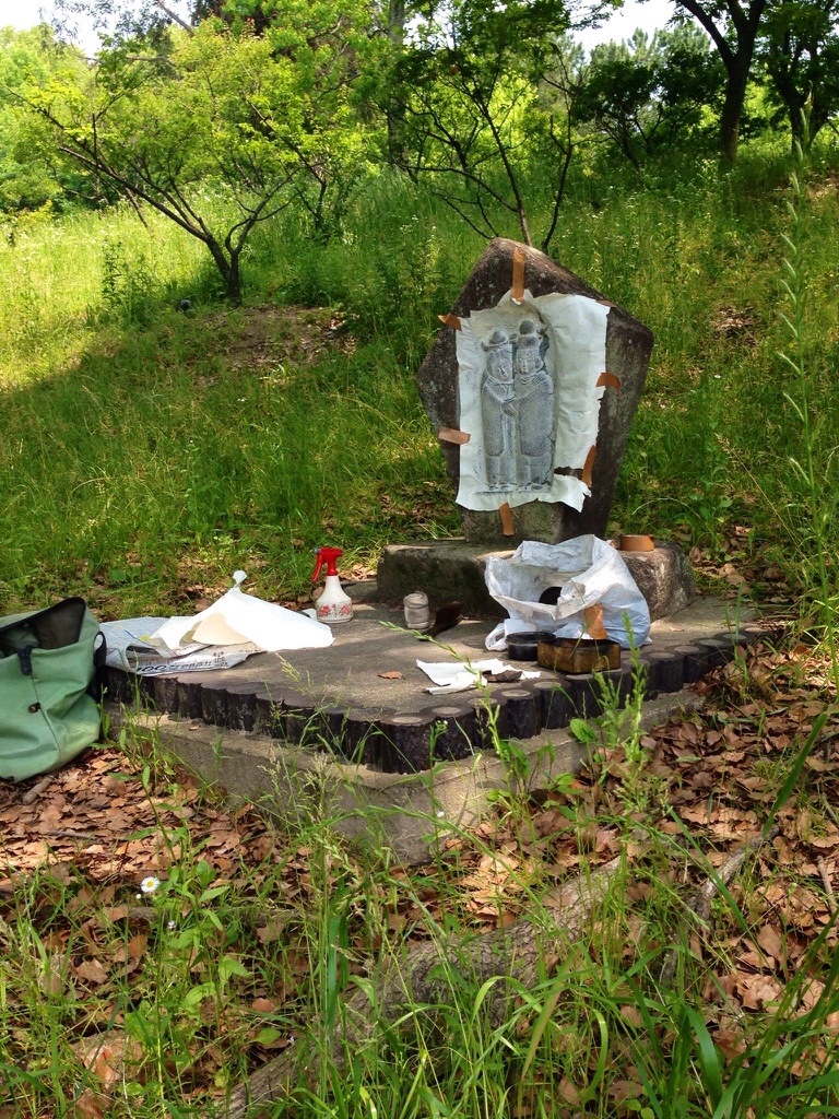 道祖神を拓本していた翁とおかあさんに遭遇。