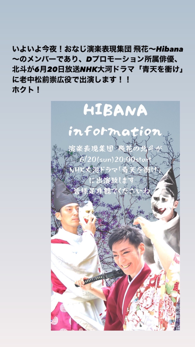 昨年結成した演楽表現集団 飛花〜Hibana〜の仲間であり、Dプロモーション所属の俳優・北斗が!