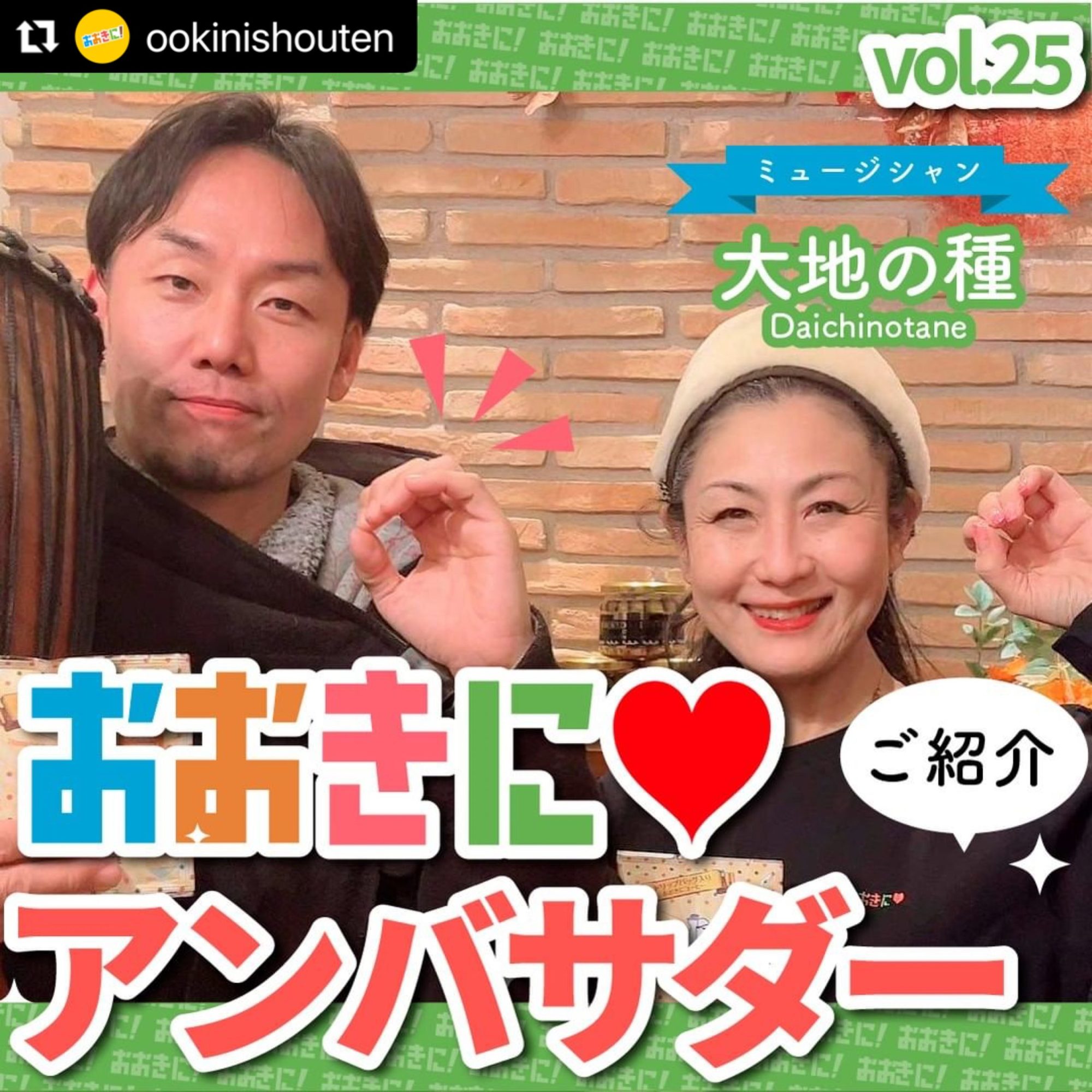 おおきに商店 @ookinishouten さんのおおきにアンバサダーとして、植物音楽ユニット・大地の種、2023年2月から就任しました。