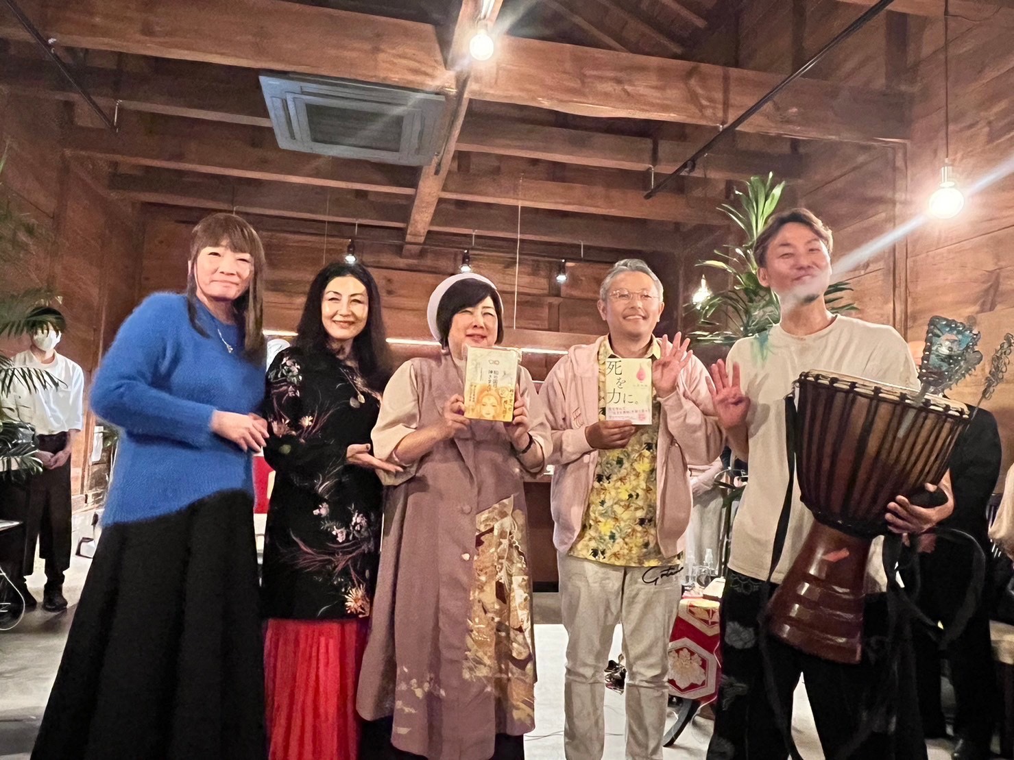 妃谷 朱理さんの主催、出雲市駅より徒歩5分のビストロあんさんにて、山本時嗣さんの「死を力に」、香坂琉月さんの「和の国の神さま占い」出版記念イベントに植物音楽ユニット・大地の種、音楽で参加させてもらいました。