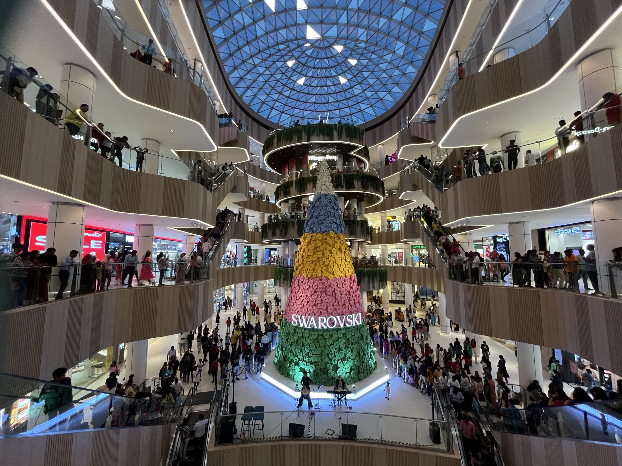 記念すべきインドでの初コンサート。クリスマスで賑わうモール。