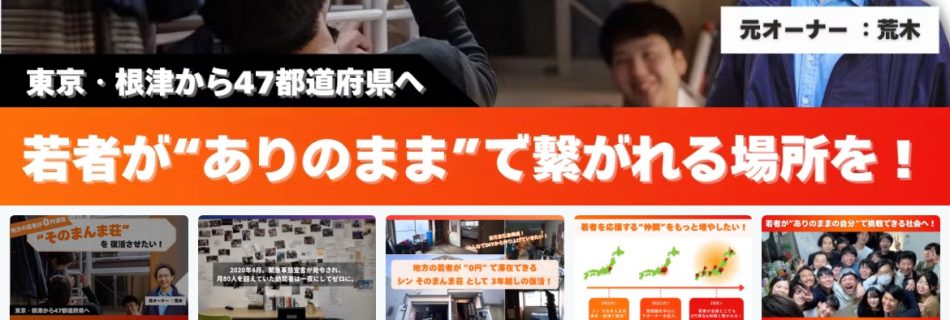 English follows below. 昨年、真愛神舞プロジェクトで共演した荒木孝文くんが立ち上げたクラウドファンディング。 地方出身の若者たちが、東京での就職活動の際に“0円で泊まれる家”をもう一度つくるプロジェ …