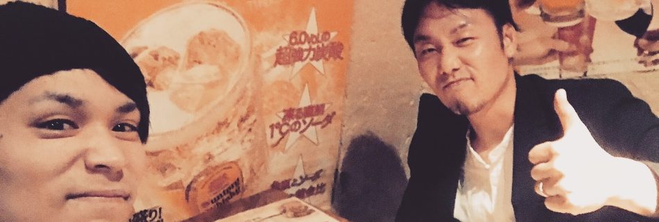 渋谷でハモネプ王者A-Zのボイスパーカッションの隆宏と飲み! 大阪京橋で会った去年の1月ぶり。 嬉しいね。 今年秋に大阪で一緒にイベントしようと打ち合わせ。 隆宏は五月に沖縄北谷でもライブするので皆行ってあげてね。
